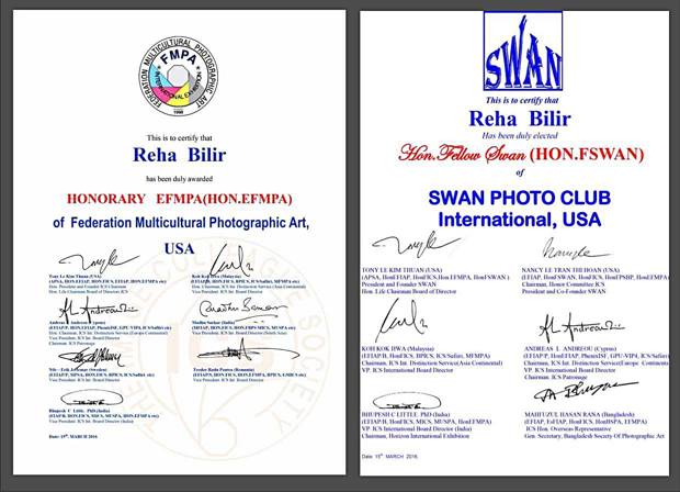 Uluslarası Fotoğraf Sanatı Federasyonu - FIAP’tan Reha Bilir’e Onur Ödülü